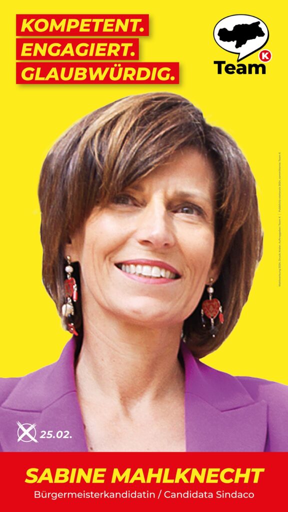 „Ich bin sehr stolz auf unsere Gruppe, wir werden dem Wort Team nicht nur in unserem Namen gerecht, sondern auch im Handeln. Unser Ziel ist es, die Vertretung des Team K im Gemeinderat – welches die zweitgrößte politische Kraft in der Stadt ist – zu erweitern, indem wir die politische Monokultur der SVP durchbrechen.